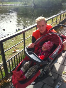 Efter lunch och middagssovning så åkte vi ner till stan och lekte i Stadsparken och gick vid svandammen.